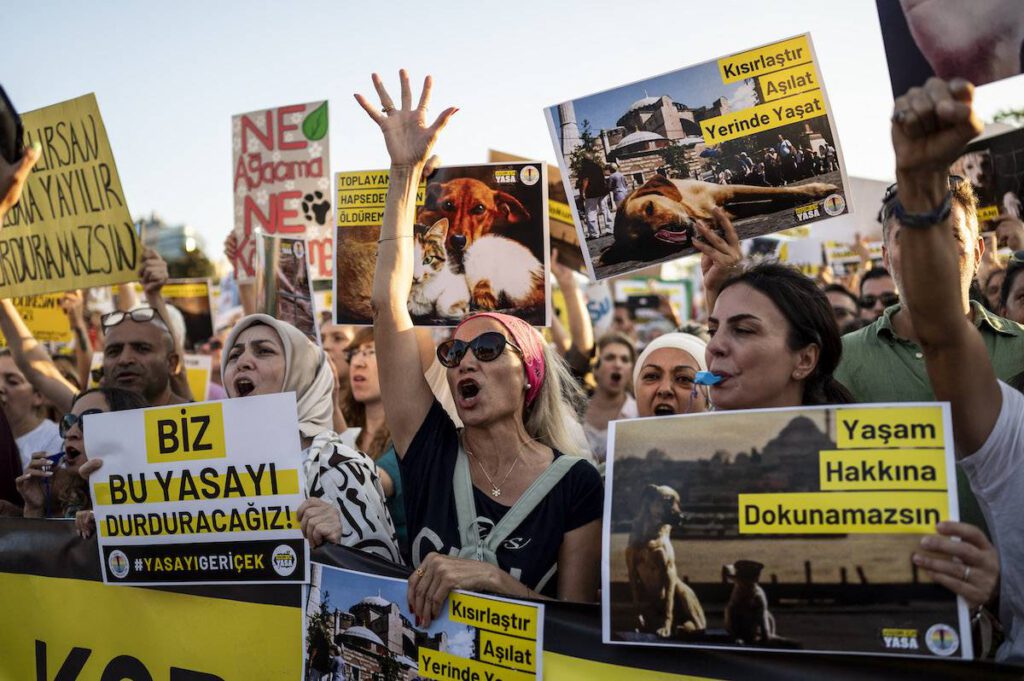 One situation that has been hard to ignore is what has been happening to street dogs in Turkey. For a long time, people in Turkey lived in everyday coexistence with animals who lived outside. Traditionally, the Turks were nomads and it was very normal in their communities to have half-domesticated dogs living outside. People fed them and looked after them, even if the dogs did not live inside a home. The legal idea for years was generally „catch, treat, sterilize, return“ to the original area. But in practice, this was not consistently implemented, and capacity was limited. So the number of dogs grew. The situation got more and more tense, with increasing conflict.