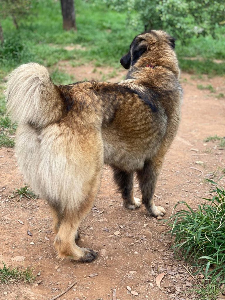 Nero is about two and a half years old, and he immediately draws attention. With a shoulder height of around 73 cm, he is a very large dog. When he comes closer, his gentle character becomes clear right away. He is very attentive and deeply kind in the way he moves and connects.