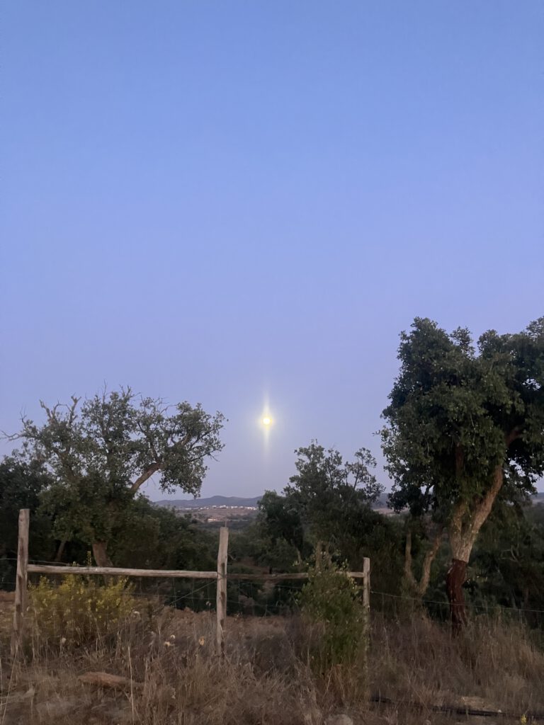 Staring into the Harvest Moon from the top of an Alentenjano hill, I wonder: „Aren‘t we humans just wanderers in a vast and mysterious universe?“