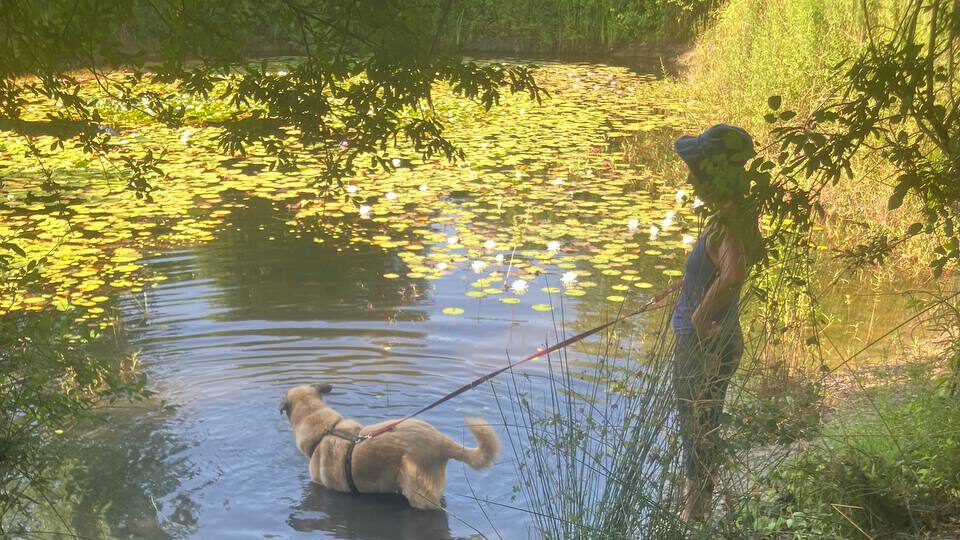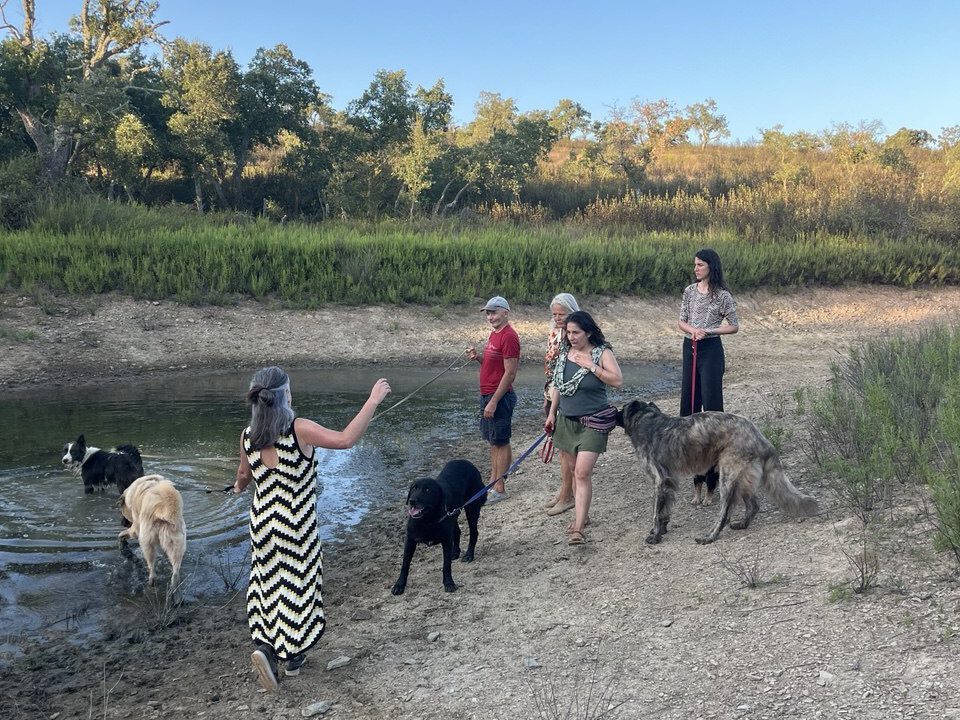 At the waterlily pond in Tamera, we are inviting the dogs for a swim.